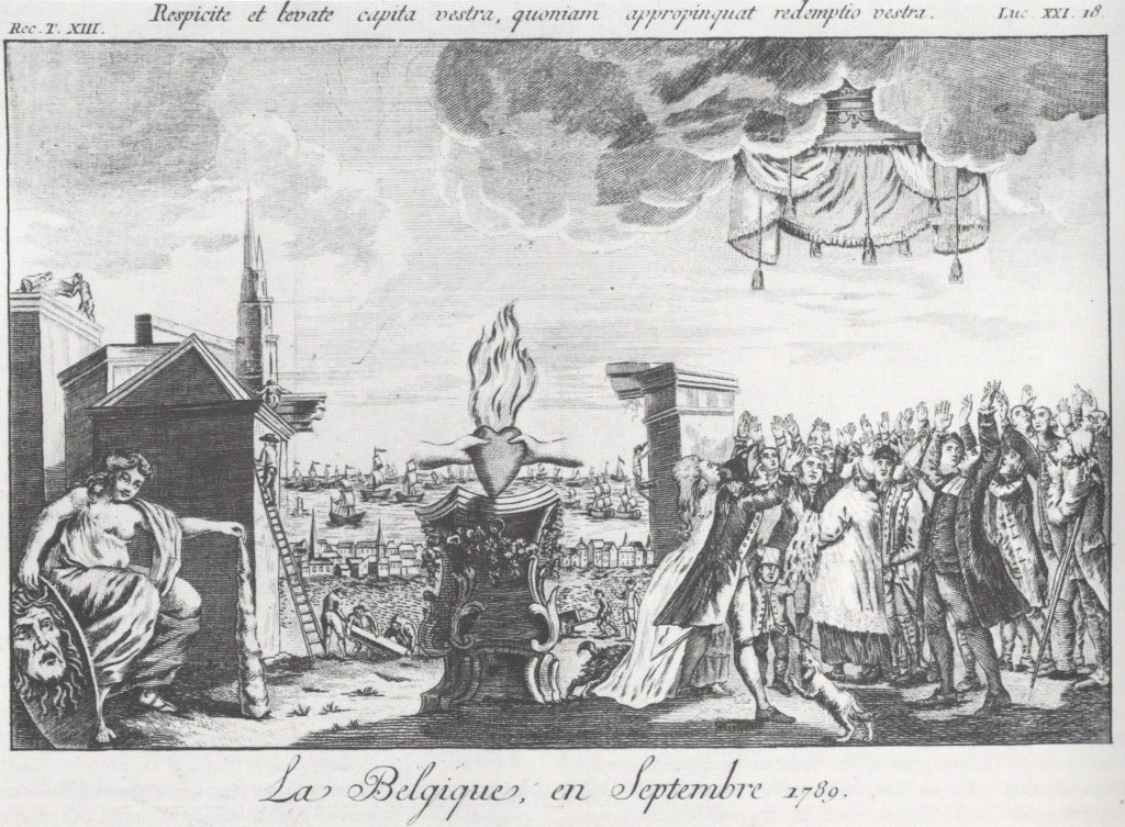 Les sources écrites, certes, reflètent l’avis des élites, mais la levée de l’armée patriotique et la participation aux rassemblements publics témoignent d’un niveau certain d’adhésion populaire. Dans quelques cas, c’est même la foule qui pousse les meneurs à davantage de radicalité. Pour autant, on ne se trouve pas en présence du nationalisme idéologique et massifiant, tel qu’il se développera aux XIXè et XXè siècles. L’avocat Jean-Baptiste Verlooy, un des ténors du camp démocrate, fait exception quand, dans son Projet raisonné d’union des Provinces-Belgiques (1790), il pousse le pathos idéaliste jusqu’à appeler les Belges à croire qu’ils peuvent égaler la grandeur romaine (p. 221). Dans l’esprit de la majorité des acteurs, ce sont les manquements de l’Empereur à ses devoirs qui poussent à se séparer de lui. Il n’est nullement question de son allochtonie. Les Habsbourg d’Espagne puis d’Autriche ne sont pas considérés comme des étrangers, même à la fin du XVIIIè siècle: ils sont ducs de Brabant, comtes de Flandre, ducs de Luxembourg, seigneurs de Malines, comtes de Namur… 1830 se rapprochera davantage du nationalisme moderne par les facteurs culturels, linguistiques et religieux qui induiront l’antagonisme belgo-néerlandais.