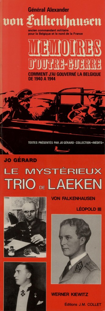 Les « Mémoires d’outre-guerre » et « Le mystérieux trio de Laeken » de Jo Gérard: deux reflets du plaidoyer pro domo du gouverneur de l’occupation. (Source: nn. 2 & 3)