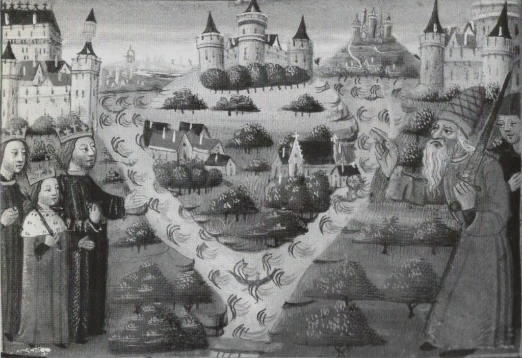 En apparence, la Vie de Charlemagne (Vita Caroli Magni) d’Eginhard [2], œuvre située dans le premier tiers du IXè siècle, participe de la construction d’une image négative du fils renégat. A l’historien, figure marquante de la cour, qui a eu accès aux archives royales et aux versions antérieures, Pépin devra d’avoir été désigné pour la postérité par sa déformation dorsale, peut-être exagérée, en tout cas de nature à le tourner en ridicule. Et pourtant, la même source nous dit qu’ « après la découverte du crime et la condamnation des conjurés » de 792, Charles « accorda à Pépin, une fois tondu, la permission de se consacrer désormais, de bon gré, à la vie religieuse dans le monastère de Prüm » [3]. Autorisé, donc, mais non contraint… Des circonstances atténuantes lui sont par ailleurs reconnues, particulièrement le climat de sédition suscité par les crimes attribués (mais non précisés) à Fastrade, épousée par son père après la mort de Hildegarde. La trahison, en outre, ne serait pas venue, ou pas exclusivement, d’un Carolingien: la maison n’est ainsi pas trop éclaboussée par l’offense. Le fils, désespéré par la cruauté de sa belle-mère, se serait laissé pousser aux extrémités par des membres de la noblesse franque. Dans ce qui a toutes les apparences d’une tentative de réhabilitation, on constate d’autre part qu’aucune intention parricide n’est envisagée. Même l’infirmité physique du personnage pourrait bien n’être évoquée que pour expliquer qu’il ne soit pas devenu évêque de Metz (les handicaps graves fermant l’accès au sacerdoce) en échange du renoncement à participer au partage du royaume, comme Charlemagne en aurait caressé le projet.