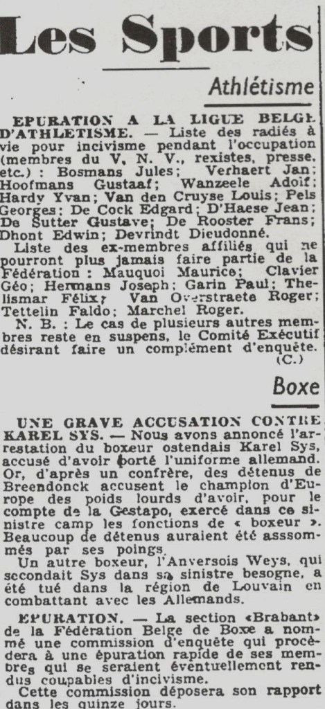 Ce qu’on désigne par le mot « collaboration » recouvre en outre un panel d’attitudes qui présenteraient de grands écarts de degrés s’il était possible de les situer sur une échelle. Les lignes rouges de la conduite répréhensible sont définies principalement par les articles 113, 115, 118bis et 121bis du Code pénal, avec les additions et modifications qu’ils reçoivent jusqu’en 1949. Mais quoi de commun entre le journaliste sportif qui continua de relater les matchs de football dans Le Soir contrôlé par l’occupant et le militant zélé de Rex ou du Vlaams Nationaal Verbond (VNV) qui dénonça ses voisins juifs ou résistants ? Entre le chef d’entreprise exécutant des commandes de la Wehrmacht pour maintenir ses ouvriers au travail et le bourreau de Breendonk Richard De Bodt qui fut le dernier « collabo » derrière les barreaux, mort à la prison de Saint-Gilles en 1975 ? A la multiplicité des cas correspond celle des archives et leur abondance. Entre 50.000 et 70.000 personnes ont été enfermées au cours de la répression, mais le nombre de dossiers ouverts s’élève à 405.493 (p. 62), dont environ 71 % débouchèrent sur un classement sans suite (p. 69). Le lecteur de Papy était-il un nazi ? verra défiler la kyrielle d’instances politiques, militaires, judiciaires, administratives, locales… appelées à statuer sur des faits ou des soupçons de trahison. Ainsi, quelque 40.000 dossiers individuels ont émané de commissions consultatives ou du ministère de la Justice qui les avait mises en place. 26.000 d’entre eux peuvent être consultés aux Archives générales du royaume à Bruxelles, le reste aux Archives de l’Etat dans certaines provinces (pp. 154-155).