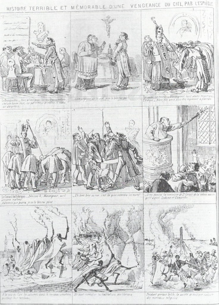 En ligne de mire, il y a notamment le statut des cimetières. Le régime napoléonien les a placés sous l’autorité des communes, chaque religion pouvant disposer de sa propre section. Rien n’a toutefois été prévu pour ceux qui sont décédés sans confession ou dans l’irrégularité par rapport à celle qu’ils professent (non baptisés, suicidés, duellistes, criminels non repentis…). En outre, l’ambiguïté est patente dans les villages dont tous les habitants sont catholiques. L’officiel et le religieux y mêlent forcément leurs eaux. L’espace où l’on enterre a été béni par le clergé, alors que c’est l’édilité locale qui l’a aménagé.