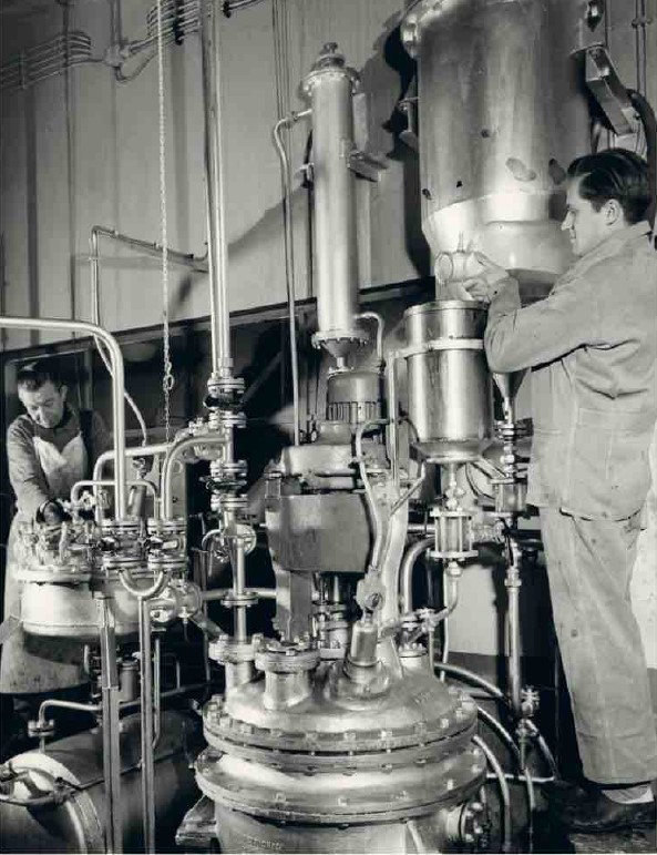 Au début, l’UCB se développe à travers trois divisions distinctes: Fours à coke et ammoniaque synthétique, Produits chimiques, Pharmacie. Si les liens entre elles demeurent lâches, la recherche scientifique bénéficie de la circulation interne du savoir et du know-how. Le moment est opportun, le roi Albert Ier venant d’appeler à la mobilisation de nos cellules grises dans son retentissant discours de Seraing (1927). Laboratoires et bureaux d’études fleurissent dans les différents sites, coordonnés à partir de celui de Drogenbos.