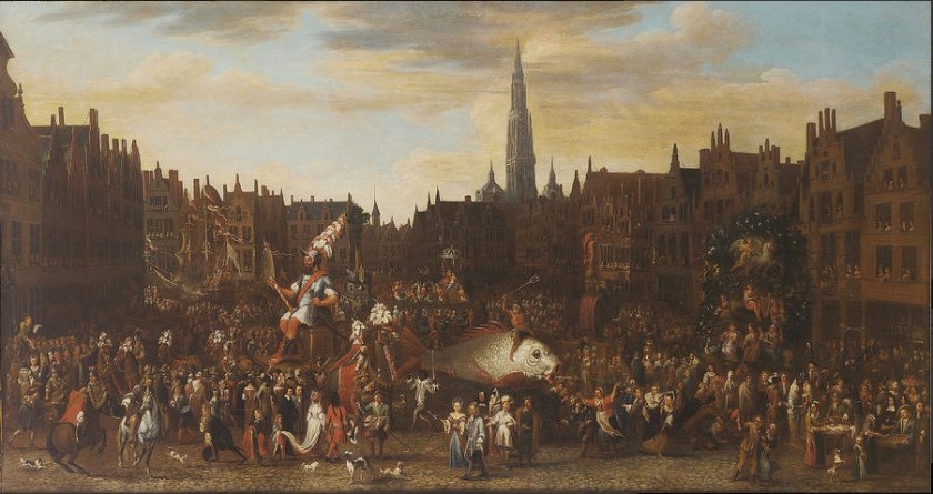 Les processions et leurs géants, en raison de leurs liens avec la religion et les pouvoirs d’antan, firent aussi les frais de la chasse aux traditions. Et pourtant, la table ne fut pas totalement rase… Ainsi à Anvers, ces usages festifs ont-ils traversé la période d’une manière inattendue, que vient éclairer un article de Brecht Deseure, chercheur attaché à la Bibliothèque royale de Belgique et à l’Université libre de Bruxelles [1].