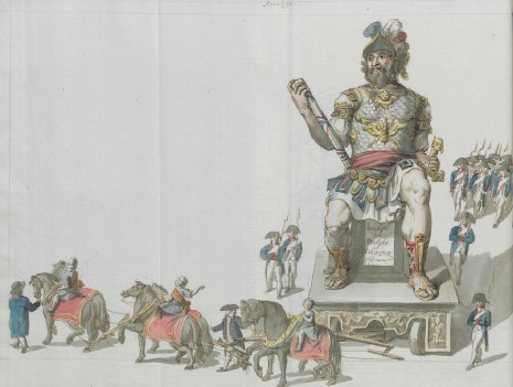 Dans une première phase, il est vrai, le Directoire a interdit les ci-devant festivités identifiées aux « superstitions » . Mais les cérémonies publiques conçues pour les remplacer et susciter un état d’esprit républicain sont boudées par la population qui les juge ennuyeuses et/ou entend manifester son rejet de l’occupant et de son idéologie démocratique antireligieuse. Du coup naît, dans les cercles dirigeants d’Anvers et du département des Deux-Nèthes (dont elle est le chef-lieu), l’idée de réveiller les chars mis au rancart depuis trente ans pour les intégrer aux défilés des temps nouveaux. Le conseiller communal Jean Mesigh décrit parfaitement le processus d’instrumentalisation envisagé: « On pourra, dit-il, objecter que c’est une statue de l’ancien Régime, que c’est du vieux tems ou on amusait le peuple avec des geans, mais citoiens ne peut on pas la décorer avec la cocarde tricolore, un drapeau de la même couleur à la main, en faire pour ainsi dire l’emblème du gardien de la constitution » .