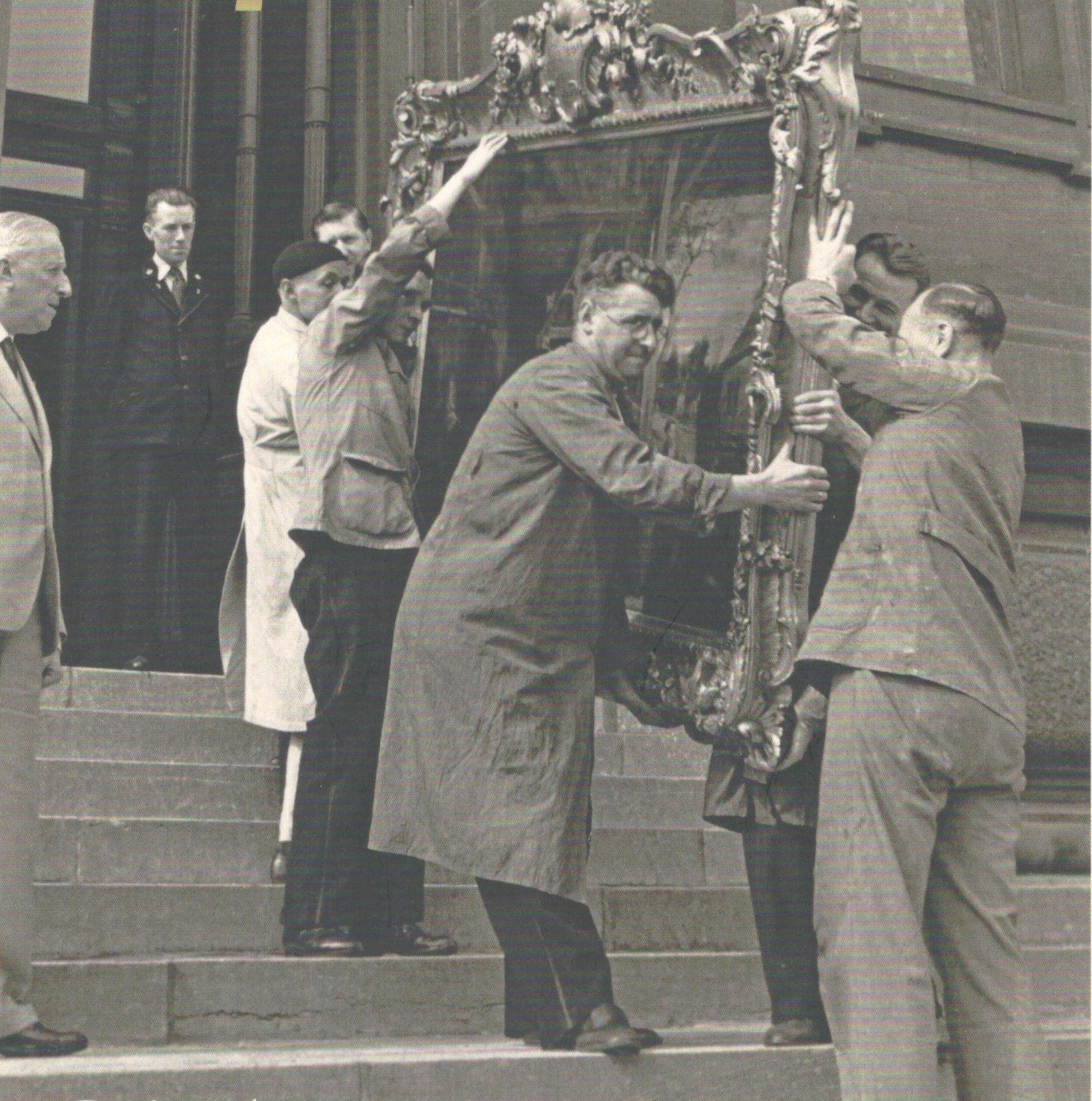 Si on redoute les bombardements allemands ou alliés ainsi que les pillages propres au temps de guerre, le moindre des paradoxes n’est pas que l’occupant lui-même va se préoccuper de la sauvegarde des chefs-d’œuvre du patrimoine belge. Dans la Métropole, les mesures prises à cet égard se décident à la Propagandastaffel (Escadron de propagande) installée à la Bexstraat. Et quand Arthur Cornette, conservateur du KMSKA, relate dans son journal la visite en juin 1940 de responsables du Kunstschutz (le Service allemand des armées pour la protection du patrimoine) menés par l’historien de l’art Franz von Wolff-Metternich zur Gracht, ceux-ci, écrit-il, lui ont fait une « excellente impression » (cité p. 36).