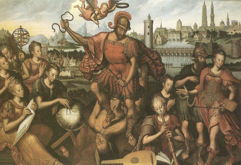 Au musée Grœninge de Bruges, un tableau d’Antoine Claeissens est supposé représenter Mars entouré des arts libéraux et triomphant de l’Ignorance. Destinée à l’origine à l’hôtel de Ville de Bruges, l’œuvre se prête à bien des interprétations, y compris politiques (1605)